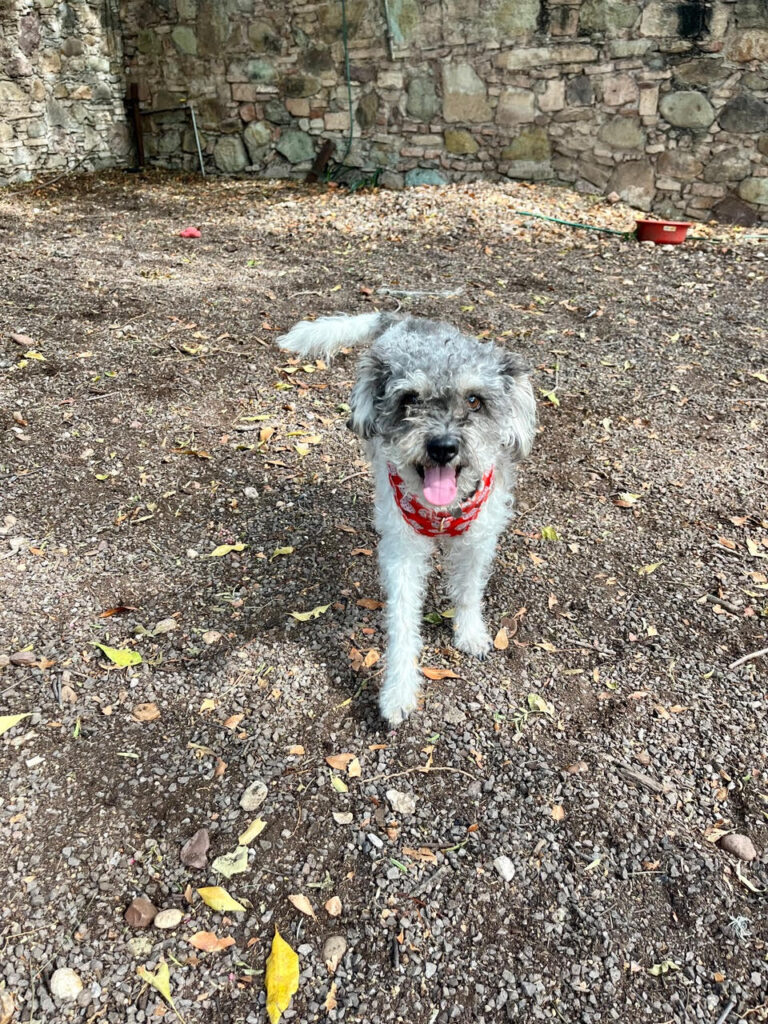After a while I explored the walled-in area by myself, marked my territory, and introduced myself to a small Chihuahua who was hiding under a chair. All the humans gave me friendly pats, and the other dogs gave me sniffs. There was even a dog trainer to help the younger and unsocialized dogs learn how to interact! I had so much fun teasing a big mastiff named Argo, but his human wouldn’t let him tussle with me. Little does she know that I’m stronger than I look.